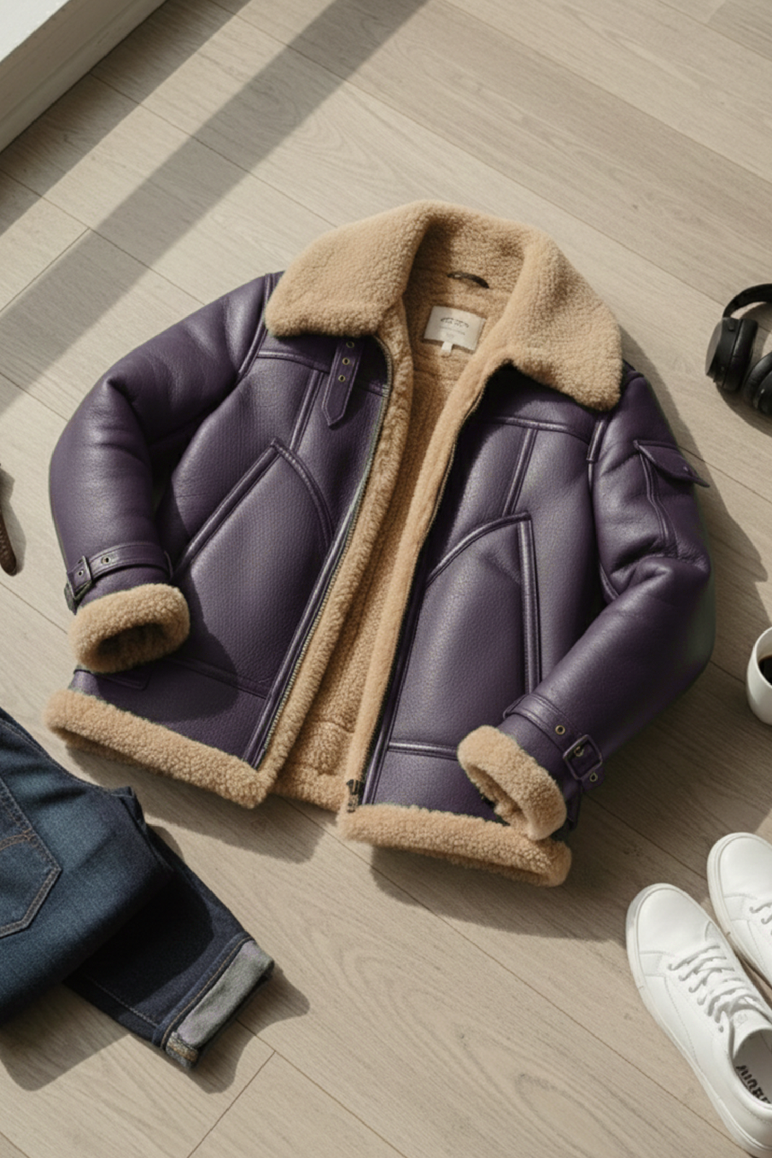 Shearling-Lined Aviator Jacket | Dominic – Purple Eggplant