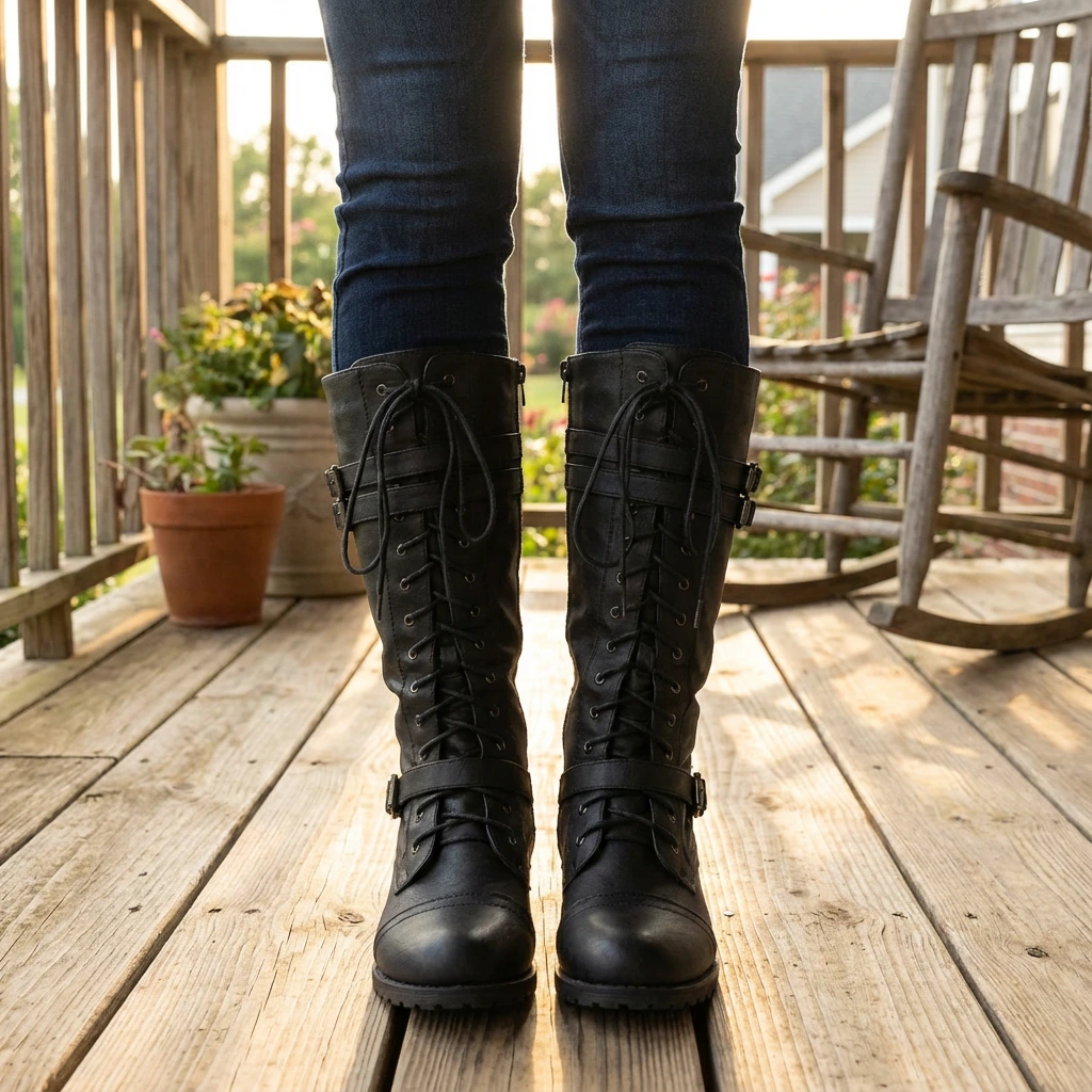 - Statement Lace-Up Front: Creates a secure, adjustable fit while adding a strong, fashion-forward look.